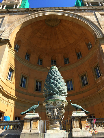 从凯撒厅出来就到了可以坐下来歇歇脚吃点喝点享受阳光的松果庭院。当时制作了两个,另外一个在联合国