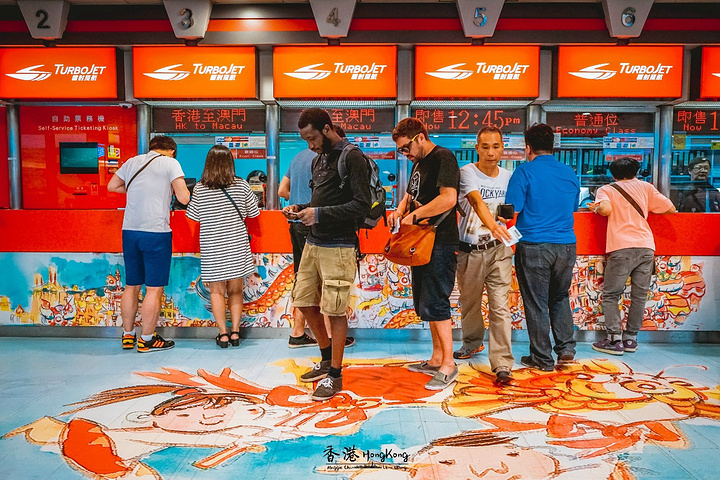 到了告别香港的时候,吃饱喝足的我们赶到上环港澳码头购买去澳门的船票。 喷射飞航和金光飞航都主营香港往返澳门的船运,选了个合适的时间,我们登上了去往澳门的客船。