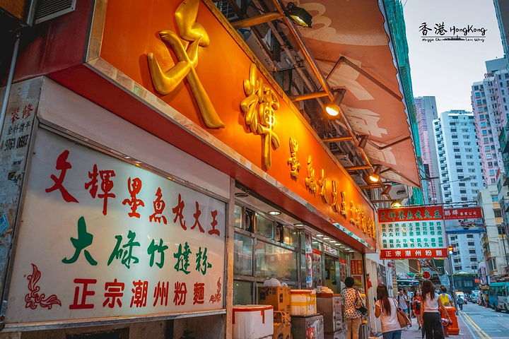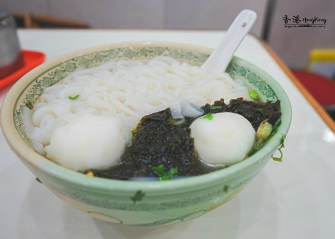 【文辉墨鱼丸大王】 香港吃墨鱼丸的地方很多很多,而文辉墨鱼丸大王绝对是不一样的存在。 据说这里的墨鱼丸都是用每只两斤以上重量的大墨鱼作为原料制成的,白白的墨鱼丸子,因手工捶打而极好地保留了纤维质感,咬起来十分Q弹。 这里的招牌菜便是紫菜墨鱼丸粉,鲜美的汤头配上富有弹性的墨鱼,再加些许紫菜,让人忍不住喝光了汤。 香港人习惯拼桌,面对面坐着却各自品尝自己碗里的美食,不在乎对面的人怎么看怎么想,沉浸在小世界中。 有些人觉得文辉墨鱼丸大王的收银大叔很没有耐心,我们并没有遇到大叔黑脸的情况,不过店里生意那么好,工作那么忙,想让大叔随时保持笑脸恐怕也是不容易吧。