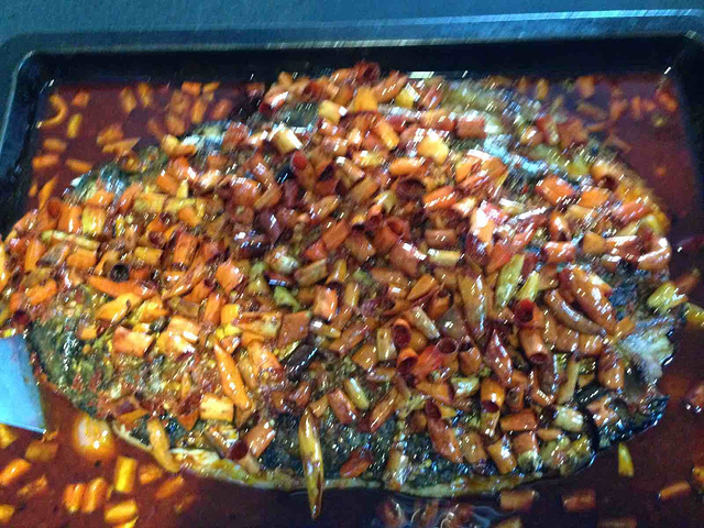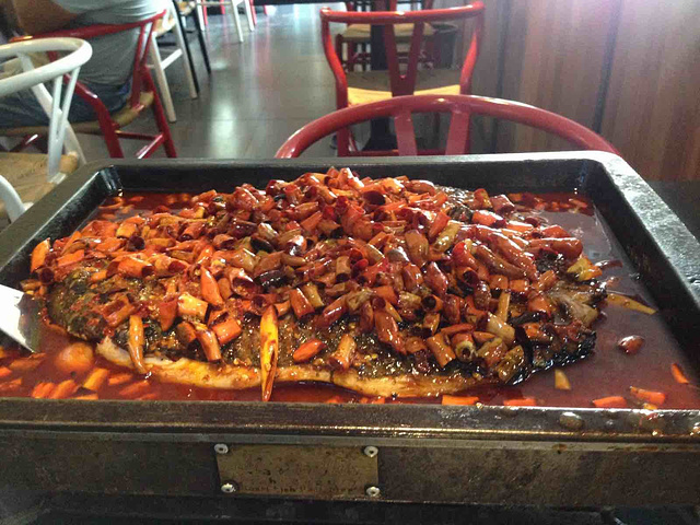 这个店靠近弯子口特别近,家是石湫的,通了新马路,从家里骑电瓶车到店里,也只花了30几分钟,去店之前我是提前一天预约的,由于天气太热,就一个人来享受美食了。到店后,接待,服务员,老板娘服务态度特别好,店里吃饭的大多数是溧水本地人,所以和她们说方言比较有亲切感。吃的第一道菜是点的香辣的烤鱼,上的第一道是口水鸡,另外,我也让服务员早点上蛋炒饭,菜上的特别快。烤鱼的味道比较好的,特别是鱼皮我觉得超级入味,然后,辣味也刚好,溧水人还是比较能吃辣的,鱼很大,分量很足,一个人吃的太多太撑了。口水鸡味道也不错的,如果能煮烂点会更入味,蛋炒饭的味道也不错的,一个人吃了好大的一碗。这家店适合聚餐,到店的时候是超过我的期望的,一开始以为是普通小店,到了以后发现确实是一家高大上的店,而且店里装潢特别美观,也很绿色。下次,会和朋友一起再去的。