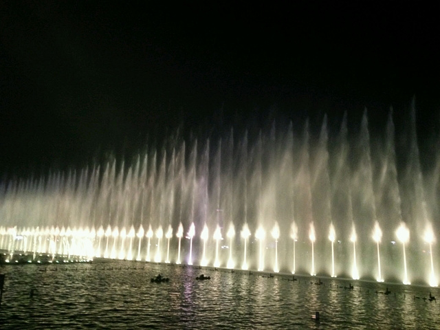 秋水广场给我的最深的印象就是,人太多。我们去的那天晚上真的是人山人海,一眼望过去全是脑袋啊。很多都是家人情侣朋友一起出游的,你不早点过去到了开音乐喷泉的时候你就看脑袋就行了哈哈哈。不过音乐喷泉真的很值得一看,跟随着音乐的节奏不停变换,甚至周围的建筑灯光都会伴随着变换,真是一场视觉盛宴。还是很建议大家去观看一下的。