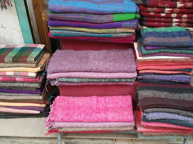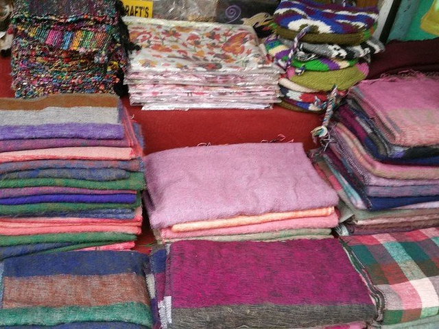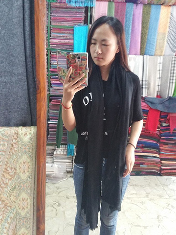 这是在加都的最后一天,应该带点什么回去,问了老板哪里卖围巾,老板早早就带我去了他朋友的一家店,小伙伴也要买,可还在睡懒觉,我就先一个人去了,围巾款式种类繁多,很多还不挂出来,因为价格贵,一般人他们也不愿意拿,这算不算好的待遇呢?挑到一半,小伙伴让我在微信上发地址,他自己来,我不得不服他看地图的能力,因我现在所处的地方是一个小巷子,他竟然还真的找到了。在店里挑了快3小时,通过微信和国内的朋友交流问他们喜欢什么,围巾店老板送来了好几次咖啡,我怎么觉着老板会亏呢,实在挑累了就坐在旁边逗逗老板家的孩子。最后老板拿出一件羊绒毛衣,伸手一摸,绝对精品啊,又软又糯,10000卢比,不还价,男女大小都有,这件衣服老板就是不挂在外面的。最后我买了十几块围巾,小伙伴也买了十几块围巾和毛衣后,匆匆赶回旅店,这时已经12点了,我们早饭没吃,午饭也没吃,老板已经在我们打包行李的时候给我们叫了小奥拓,还送了哈达,第一次接触哈达,一直以为只是白色的布而已,原来上面还是有花纹的,很漂亮、