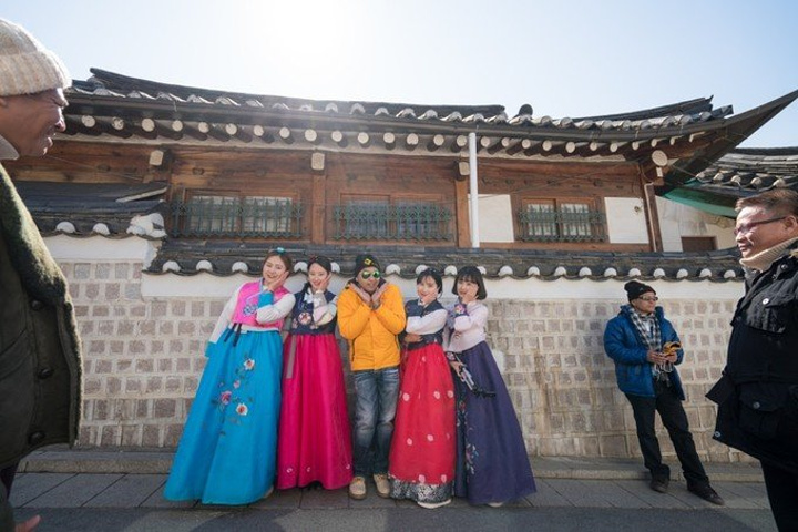 韩服装扮的游客