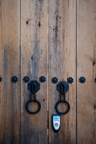 原汁原味的古朴大门,和小小的新科技