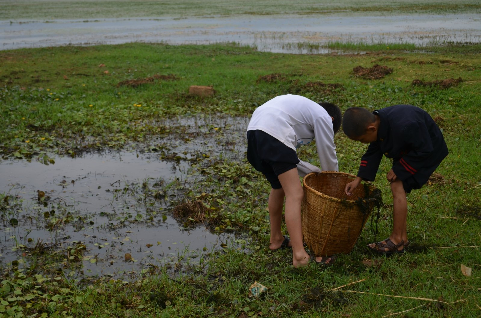 双廊也有很多这样的湿地,偶遇两个当地的小孩,他们似乎是在捕鱼?