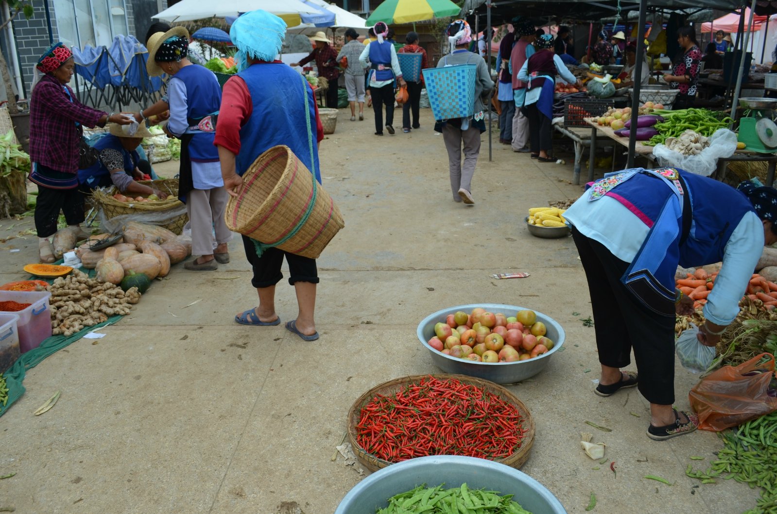 小学旁边有一个菜市场,进去一看,全是当地穿着民族服装的妇女们在忙碌啊,菜市场果然是一个最能闻到当地生活气味的地方。