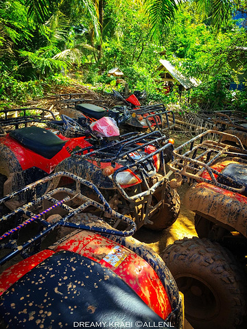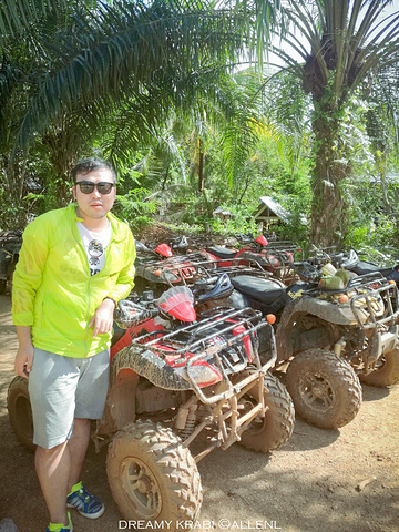 14点左右,导游把我们拉到另外一片空旷场地,即将开始下午的ATV项目。 ATV全称All-Terrain Vehicle,不是简称AV谢谢。 看到这一排排车,我们寝室四胸弟颇有种不能再熟悉的感觉……