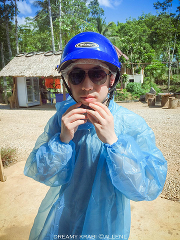 当然,ATV需要做好准备,比如佩戴头盔,身穿雨披…… 穿雨披的目的,是为了防止开车过程中衣服上被溅到幸福的泥点子。 不信的话,你看看上面第一张ATV的图,是不是所有车上都有幸福的泥点子? 知道这很热,但是必须穿啊. Blason给大家示范正常青年的ATV装备。