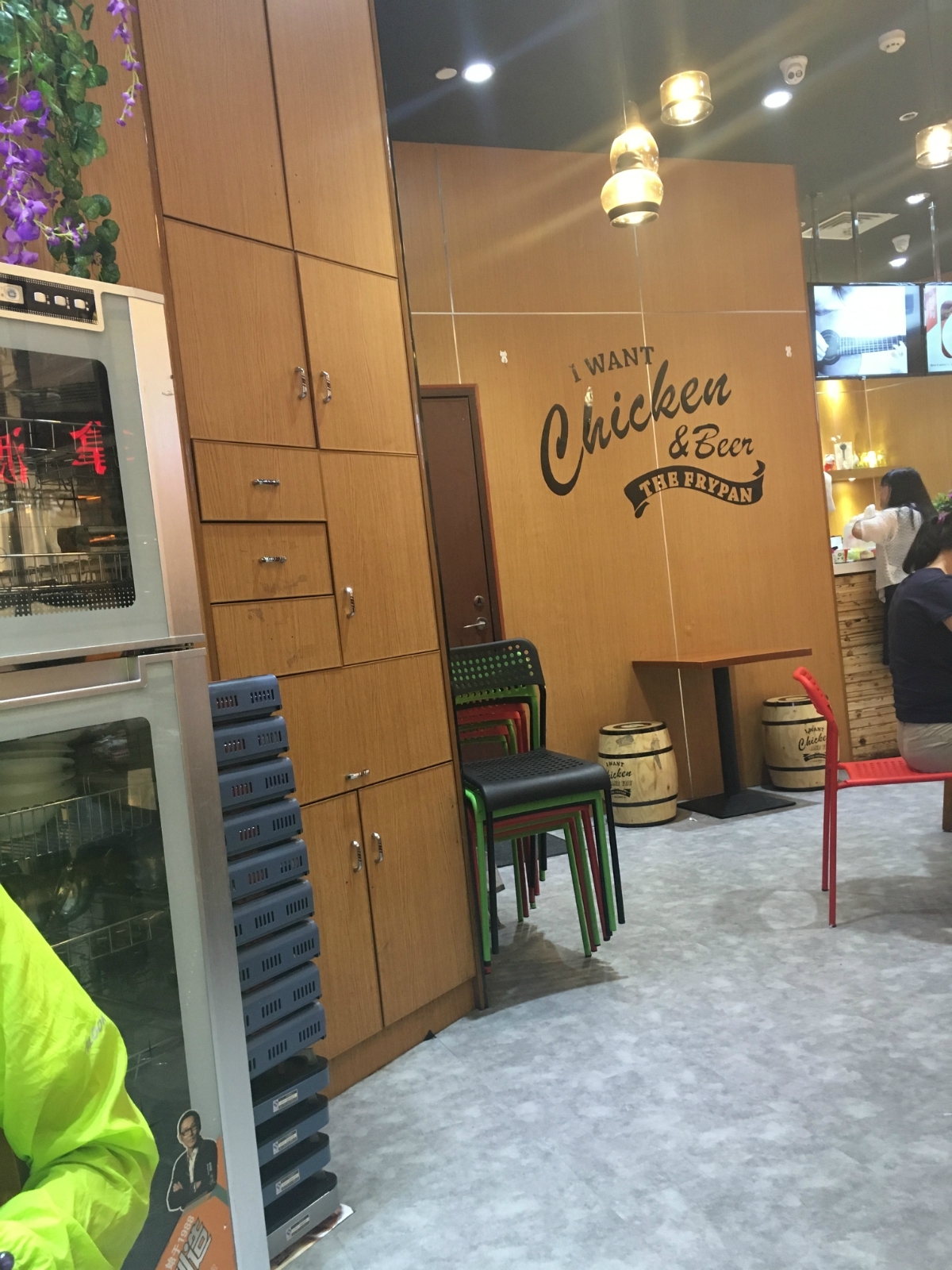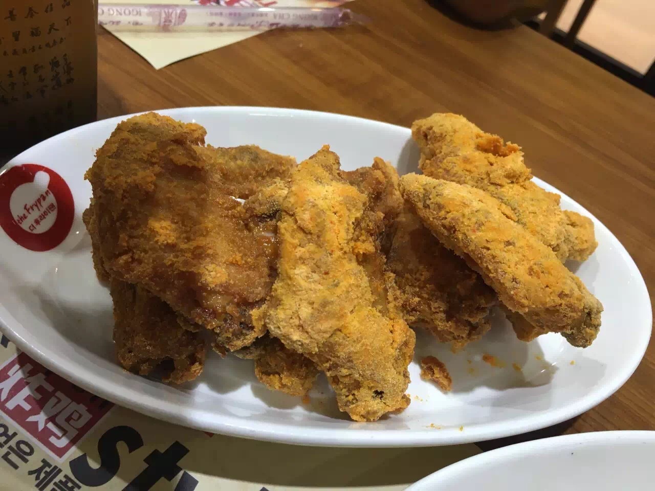 餐厅位于珠海市华发商都里面,可以坐公交车到北山下车,得来品炸鸡在华发商都的三楼,进去就感觉到很有韩国的风味,那里门口还有一个都教授的纸板人物,首先店铺的设计比较有创意,那里店铺不算大,但是是一个半圆形,坐位比较特别,服务员的服务态度一般般,面无表情,问多两句还有一点不耐烦,我觉得这个需要有待加强,店铺是先付款后进餐,需要吃什么喝什么都需要到收银台那里点餐,出品的速度还算可以,当时我叫了一个部队火锅、鸡腿、薯条和鸡翅,部队火锅用了一些芝士做汤料,里面的分量比较足,一个部队火锅3个人吃都可以,那里的炸鸡腿和鸡翅还算不错,当时我们点了芝士味,味道刚刚好,不怕太甜也不会太淡,还有浓浓的芝士味道,而且一直吃进去,鸡腿和鸡翅的肉质很滑,感觉材料还算比较新鲜,我们点了芝士薯条,因为我是芝士爱好者,没想到这个薯条比我想象的要好吃,芝士粉十足,每条薯条都粘了满满的芝士粉,吃上去淡淡浓厚的芝士味道,我们还点了饮料,那里的饮料都是韩式饮料,还有韩国的风味,边吃东西,边喝着韩国饮料,感觉还算不错,收银台上面还有个大电视,可以观看韩星演唱会,别有一番风味,整体来说还算蛮不错的, 下次我还是会继续选择这家店铺进餐。