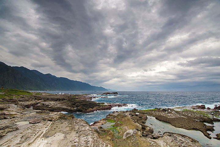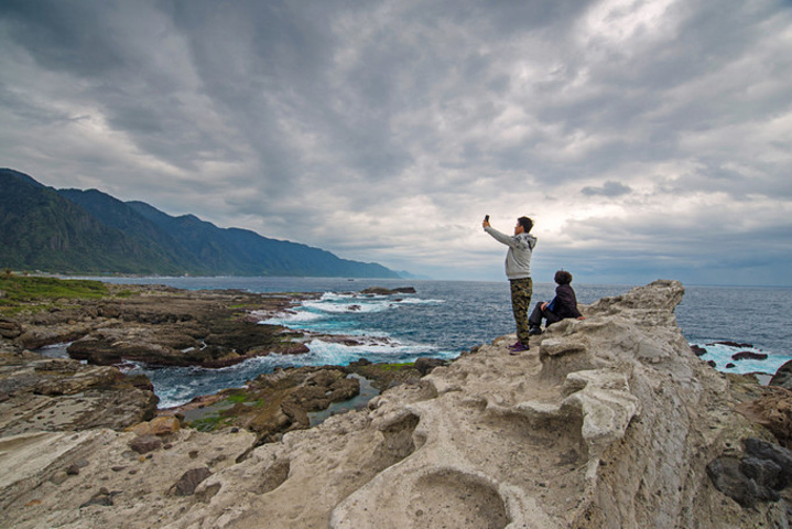 沿路就被这里的海吸引了,到了石梯坪更是被震撼到。尽管那日下午时分好天气不在,阴云卷土重来,反而增添了石梯坪那凛冽气势。 石梯坪伸向海里的石阶,是火山爆发后形成的一片凝灰岩(火山碎屑岩)质的地层,经长年海蚀后,硬的外凸,软的内凹,岩石以一定倾角向海中延伸,所以形成了石梯状的形态。 这里不同七星潭,七星潭是惊涛拍岸,石梯坪则是浪卷岩石,海浪撞击着岩石冲上陆地,吞噬一切的力量。 遇到海水平静之时,浅湾有小鱼,小虾出没,这里有开辟游客的垂钓区域。 这里还是看日出的好地方,附近有提供免费的露营场所。 这么美的地方,这一切都是免费!