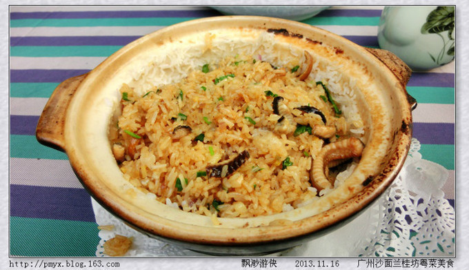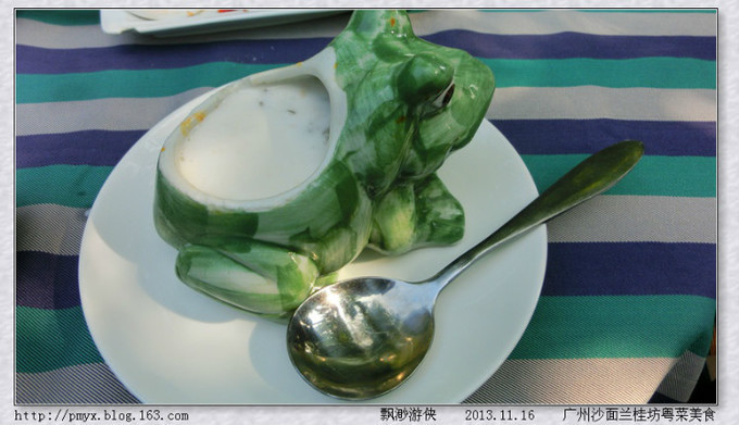 广州是以美食闻名天下的城市,我们的广州之行自然少不了品味美食。沙面所属的荔湾区又是广州的西关老城区,自然不会错过品尝地道的羊城美食。在沙面各类欧式建筑中徜徉,在露天咖啡吧聆听乐队现场表演,不知不觉就到了吃饭的时间了,在沙面靠近珠江的角落找到这家兰桂坊粤菜酒店,在雅致的花园里品味各种粤菜。功夫茶、金牌乳鸽、台山黄鳝饭、五谷鲜茄炖贝肉、香茅猪颈肉、椰汁木瓜炖雪蛤、西米露。