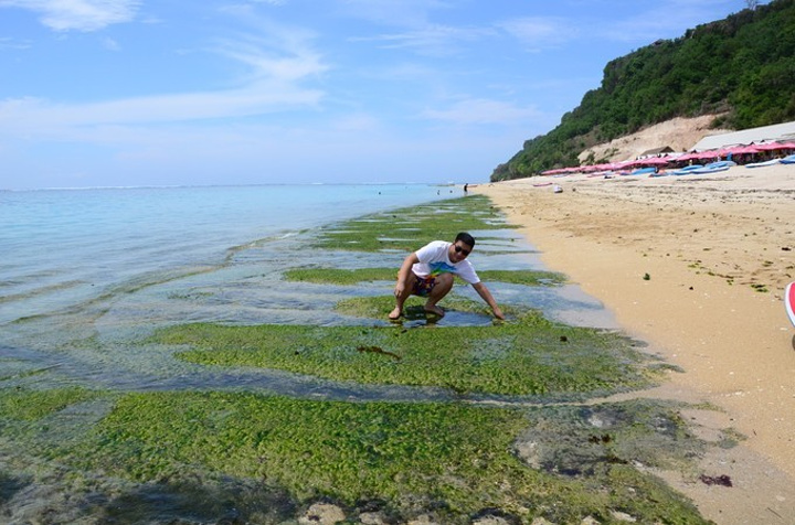 一眼望去的pandawa海滩超级漂亮,这里也很适合游泳,浪被挡在很远的地方,而且游人真的不多...