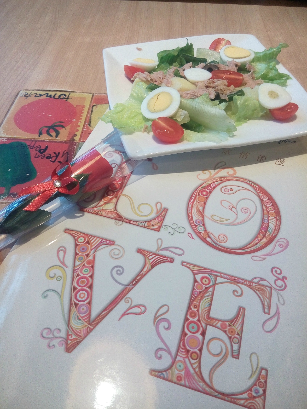 店里还送了一枝玫瑰花。