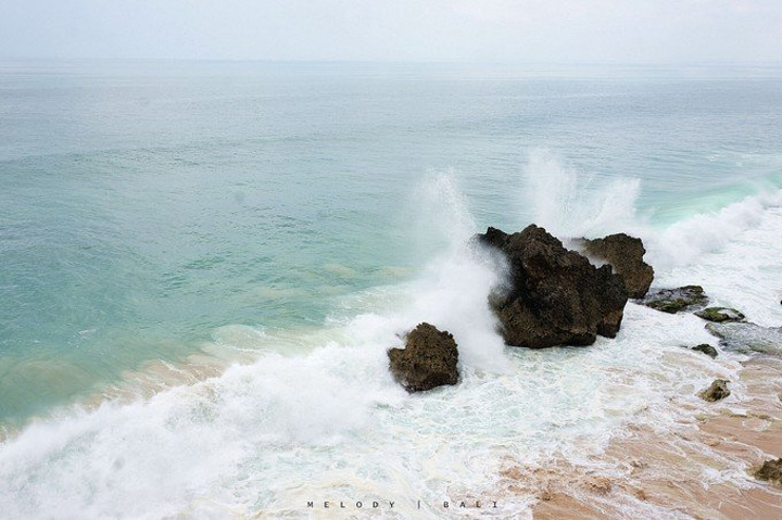 一路上经过酒店别墅区,满眼翠绿,幽静宜人,有一种岁月静好的美。可惜时间太有限,不能下车漫步。 车只能开到崖边,到达KUBU海滩需要从下车处再往下走一百多级台阶。
