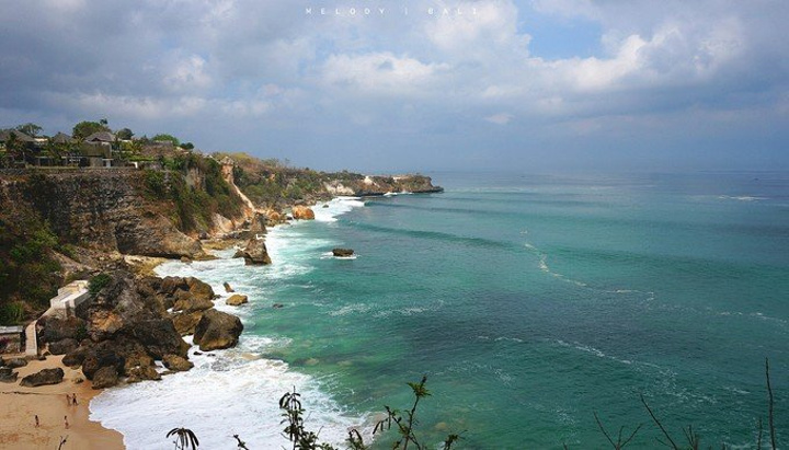 路上经过酒店别墅区,满眼翠绿,幽静宜人,有一种岁月静好的美。可惜时间太有限,不能下车漫步。 车只能开到崖边,到达KUBU海滩需要从下车处再往下走一百多级台阶。
