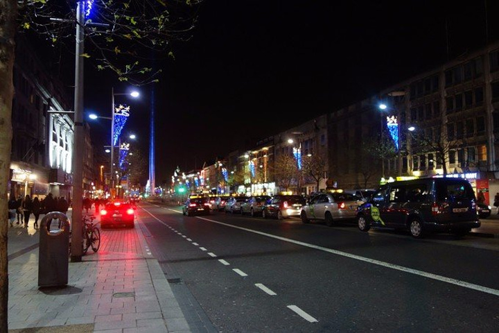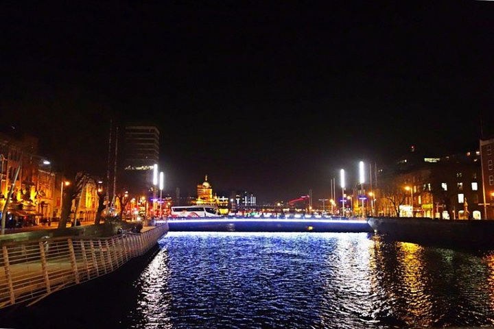 酒足饭饱以后就会想睡觉,然后十分没出息的回酒店睡了一下午。是时差的错。恩。 一觉醒来就到了吃晚饭的时间,收拾收拾出门继续觅食。寒假万岁,颓废的人生万岁!!! 晚上的欧康纳儿大街灯火通明,人流丝毫没有减少的感觉,不愧是要“过年“了感觉大家都很开心的样子,两边稍窄一些的街道上的灯光装饰也特别的好看。晚上的都柏林尖塔会被蓝色的光包裹着,不是照射真的是包裹,离远看看不出来,离近了就会看见这种神奇的蓝光