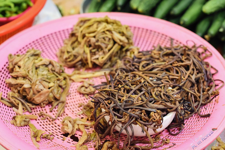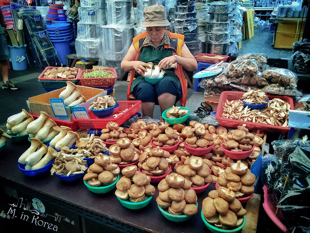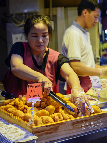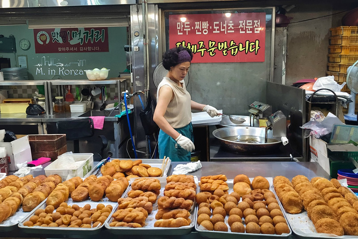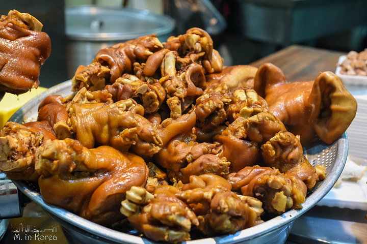 但在每日偶来市场,重要的不是买买买,而是吃吃吃! 泡菜自然不必多说,猪蹄、猪肘、血肠、炸物、红糖饼、炒年糕,眼不够看的,嘴不够吃的。