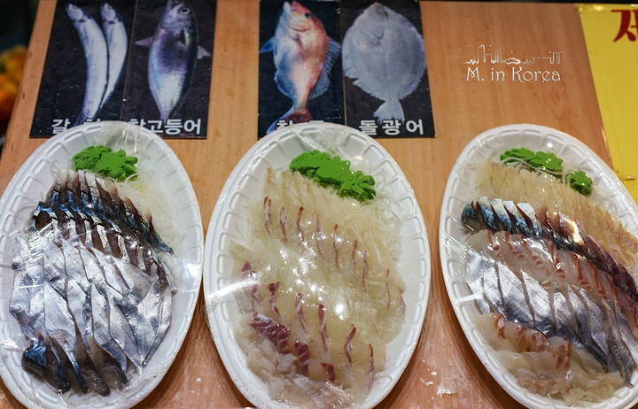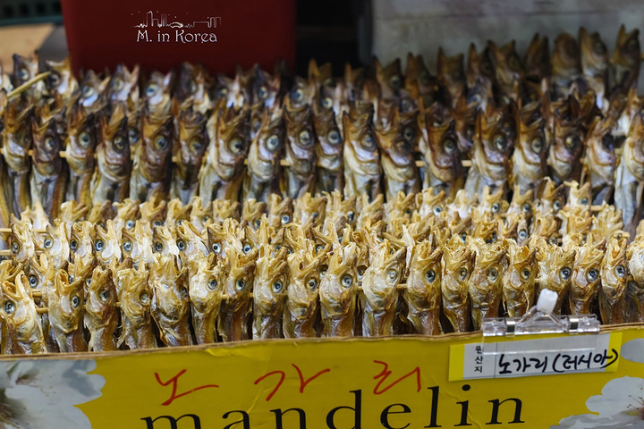 靠山吃山,靠海吃海,济州岛的海产品绝对不是盖的。有新鲜捕捞的鱼类和贝类,有切好码盘的生鱼片,还有晒好的大鱼干和小银鱼,种类之繁多让人眼花缭乱。