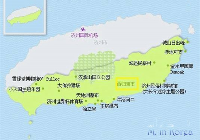 说起济州岛来,许多人只知济州市,却不知岛上还有一个城市,——西归浦市。这个北与济州市和汉拿山接壤、南面朝鲜海峡的港口城市,是韩国最南端的城市,也是韩国拥有最温暖气候的地方。