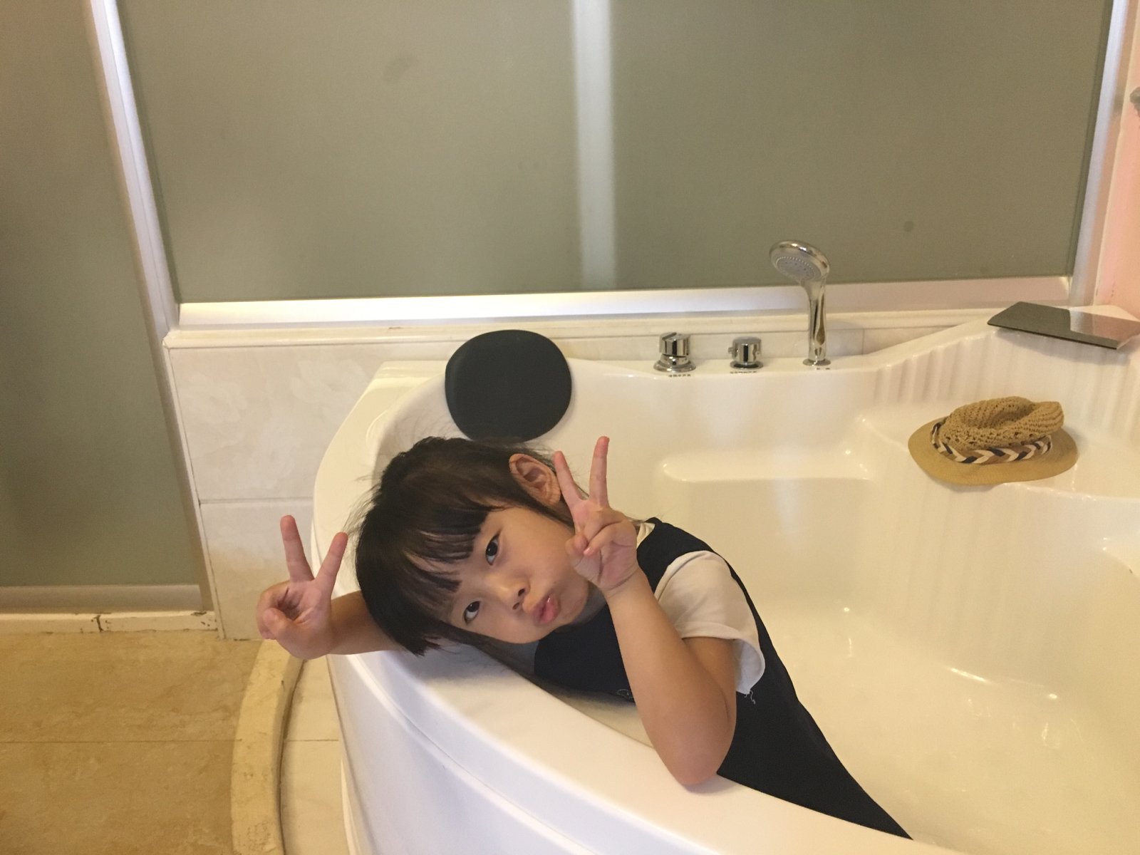小盆友一早起来就玩嗨了,连浴缸都是她们的游乐场所