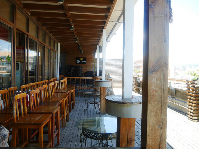 咖啡厅还有一个室外的露台,正午的时候阳光太猛烈了,但是晚上过来,可以俯瞰整个三亚湾,喝喝小酒,吹吹海风想想就惬意。