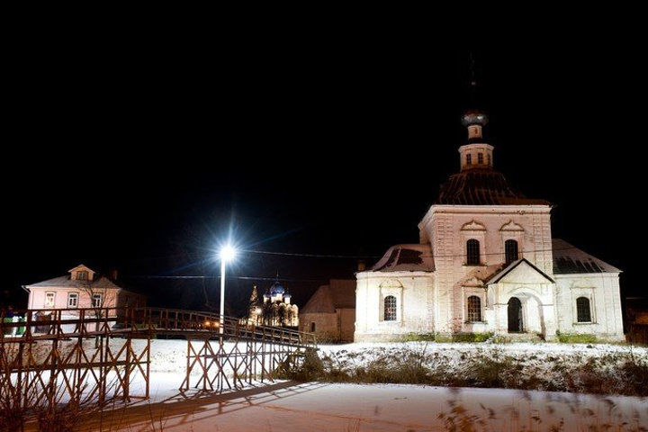 夜晚来到圣拉扎卢斯和圣季皮斯教堂拍夜景,一只躲在楼梯上休息的流浪狗摇着尾巴跟在我身边,简直寸步不离,无论站在雪地里还是来到小河边,它总能找些办法来消磨着时间,我无奈再次来到超市里,买了一袋最便宜的猫粮,大把大把喂给它。我在青旅附近曾看到不少流浪猫的身影,猫粮也可以派上用场,这只流浪狗温顺地跟了我一整路,直到被房东大妈挥舞着扫帚赶走。 去往苏兹达尔城郊汽车站的那个中午我在镇中心迷了路,询问了穿戴新潮的三个年轻哥们,结果却是失望的没有一个会说英语,还好一个哥们拿出手机把情况讲给她女朋友,又把手机递给我,就这样在电话里给我指着路。一个中年女人好心地开车载我到车站,下车后才知道她是要去往相反方向,真的感慨在俄罗斯还是女人靠谱。