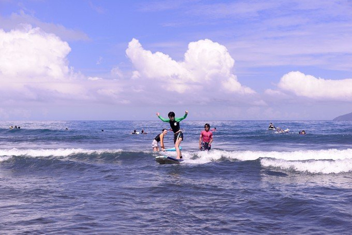 外澳冲浪,为何我才遇见你 去过几次外澳,知道那里有滑翔伞也是冲浪的胜地,但是我一直觉得冲浪这种运动离我很远,对冲浪屈指可数的印象就是清晨垦丁南湾会有冲浪的人,还有张柏芝喜欢冲浪。再有几次就是听家里的客人讲要去外澳冲浪,一个个的都是小姑娘又都是第一次冲浪,这种情况多了我也就跃跃欲试。 于是某天我和番薯还有许先生相约去冲浪,早先听一位朋友讲她去的那家店叫极酷冲浪,于是我们打了电话询问,对方说从早上五点开始就可以去,随时去都OK。于是我们开车从礁溪前往乌石港,到了之后发现一整排都是冲浪店,在我们看到有间店也叫“番薯”之后,我们开始了艰难的抉择,毕竟都叫番薯是多么有缘分的事情呀,于是经过了“艰难”的抉择之后我们“果断”的选择了这一家。 在这里给想来的小伙伴普及一下冲浪的流程,外澳这边由于近海地势的原因,非常的适合冲浪,整个沙滩都非常之平缓,走进去几十米海水也只到腰部而已,所以这边存在着很多间的冲浪店。冲浪的价格是500台币一个冲浪板,你可以两个人租一个,也可以三个人租两个,不太建议一个人租一个,因为当你开始了之后会发现这是一项耗体力的运动,而且毕竟还要有一个拍照的小伙伴呀,不然怎么满足我们发“九宫格”的愿望。而这500块的价格包括一个人的冲浪教学,一件防晒的衣服,和一个冲浪板。签好合同交完钱之后就可以下去沙滩找你的教练,毕竟所有的冲浪学校都是沙滩上,一眼还是找不到的。然后在沙滩上开始教学,负责任的教练会让你反复的练习,只有在沙滩上牢记所有的内容,才有可能安全愉快的下海玩耍。这样沙滩上教学之后,教练会让你带着冲浪板到海里继续教学,当然通常只是教个几次就让你自己玩了,我们遇到一个超级好的教练教了我们番薯好久好久(难道是因为我们番薯也叫番薯?)。