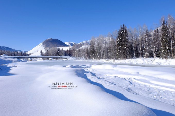 河对岸是一片白桦丛林,放眼望去,密密匝匝的枝条在阳光下随风摇摆,树影婆娑,雪地里树影拉出的蓝调线条纵横交错,使人恍惚迷离。那年秋天,在黄得耀眼的白桦林里,在禾木河边漫步赏景的镜头依稀浮现,时光流转。如今,我已带着俩孩子再次来到故地,繁华落幕,唯有寂静山林里孩子们童稚的笑声在山林里悠长的回荡。白桦林脱下了金黄的缕衣,枯树枝上随意散搭着一团团似落非落的松软雪团。走近一棵白桦树,仰头望着直入蓝天的枝桠,仿佛要穿越时空,走近神的秘密花园漫步流连。