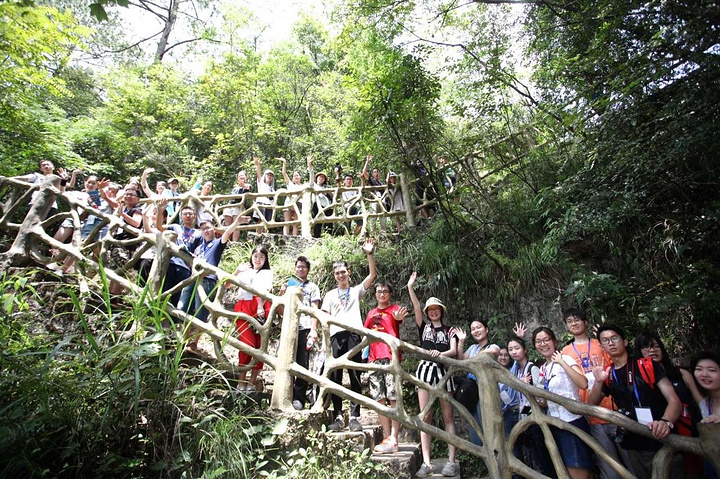 拾级而上,一群人想着山顶的观景亭进发 皓哥带着我们一路凹造型,谁能想象,为了把所有人都拍进去 他已几近站到毫无遮拦的悬崖边上……