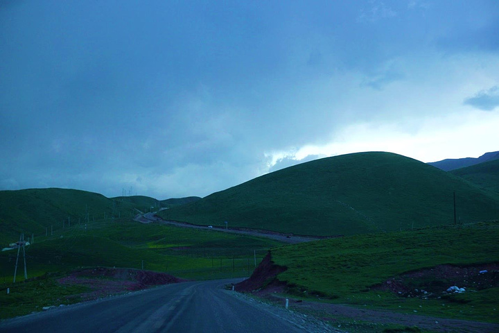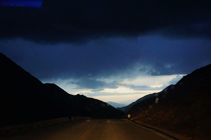 六点左右了,我们已经开进了祁连山脉的盘山公路上,头顶有片巨大的乌云,远处的城市正在下着暴雨,我们可以分明的看清楚那一道道闪电,天也已经暗了下来,前方的路都看得不是很清楚了。 导航告诉我们我们还有一百多公里就可以到祁连,我们还天真的认为八点钟我们肯定可以到祁连,但我们并不知道今天的挑战才刚刚开始,这一百多公里的山路,全都是弯弯曲曲的盘山公路,有好几十处弯道全是一百八十度的急弯道,而且这时乌云已经遮住了我们头顶,大雨已至,还夹杂着冰雹,整条路只看到了我们一辆车,虽然我们急着赶到祁连,但是路况根本不允许我们这样,四十码的跑都让人觉着危险,只要一个不小心,真的有可能从一百八十度的急弯冲下山沟(真是为难胡子了,连续开了六个小时的车,还有一半时间在跑这种“屎一样的路”—这是胡子对这种路的叫法)。