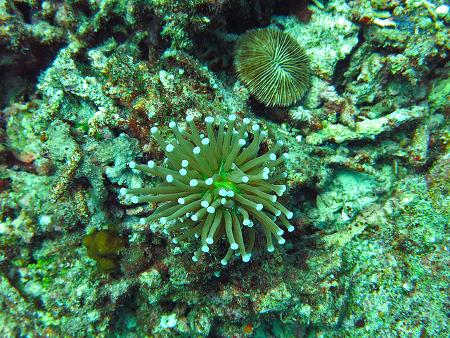 ...到了大片大片美丽的玫瑰珊瑚,海兔和小丑鱼的种类也很多,可惜大部分时候看到的却是堆满死珊瑚的沙地