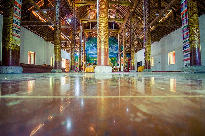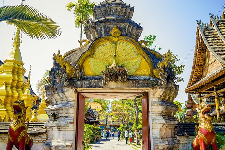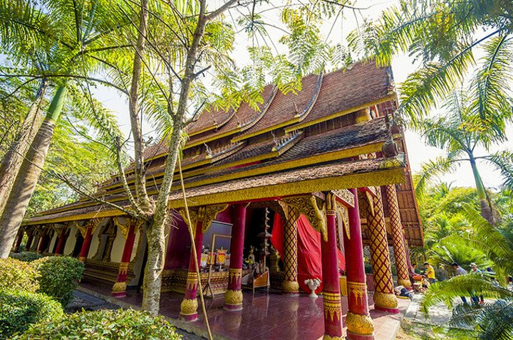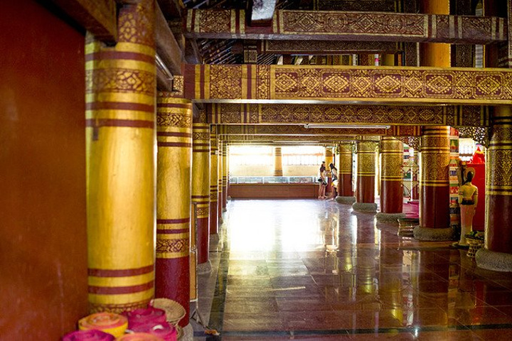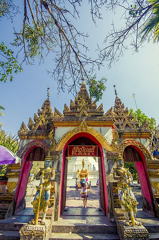这是傣族园里面的另外一个寺庙,也还是非常的精致,傣族园还是不小,从傣族园的大门口走到这个寺庙要花20多分钟,里面不准自驾车,只能选择乘坐观光车,但是如果你住在傣族园里面,也是可以把车开进去的。里面还是有很多住宿,平时很便宜,几十块一个人就包吃包住,春节期间就涨到500多了一个人了。