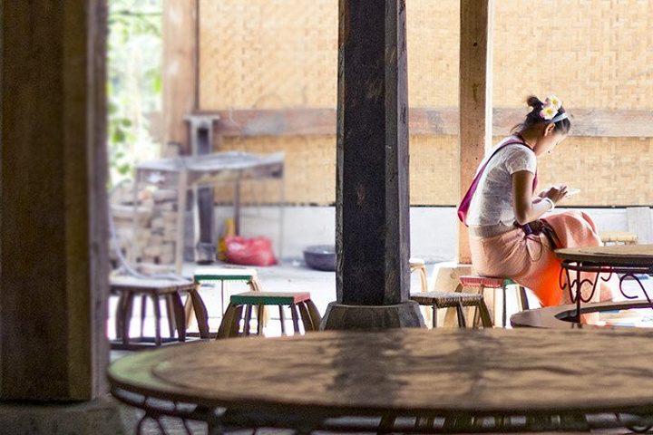 先找了一家傣族餐馆解决了中午饭,傣族的房子都是这样,一楼是架空的,下面用来吃饭,住的地方都在二楼上。