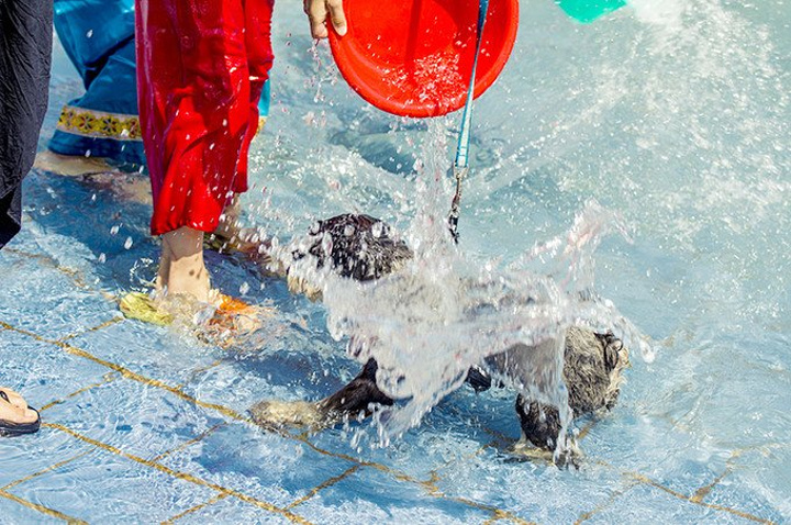 咻二宝也体验了一盘泼水节的感受。。。心里肯定在诅咒我们