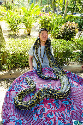 这里有很多这种拍照的,花上20块,就可以和这些蛇啊,猴子啊,孔雀啊,拍照。老年人对这些就非常感兴趣。