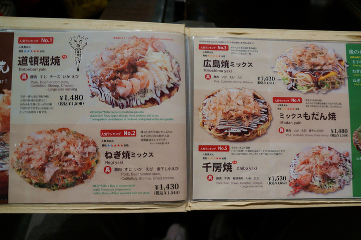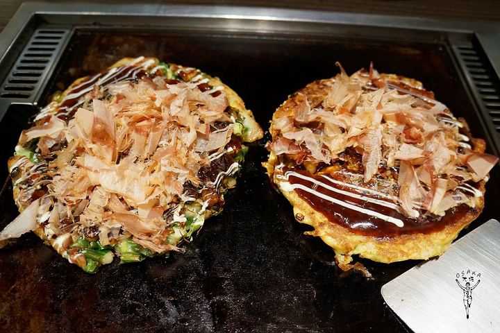 所以想要过饕餮之夜还是得来道顿崛啦 原本计划的蟹道乐又关门了 那就吃个大阪烧吧 城市的名字都拿来命名了 味道应该差不离 最有名的两家大阪烧店 一家是鶴橋風月 一家叫千房 我们选择了千房(别选择不选择了 不就逮着谁是谁吗)刚开始看到这样的桌子 还以为是把原料给你 然后我们自己DIY呢