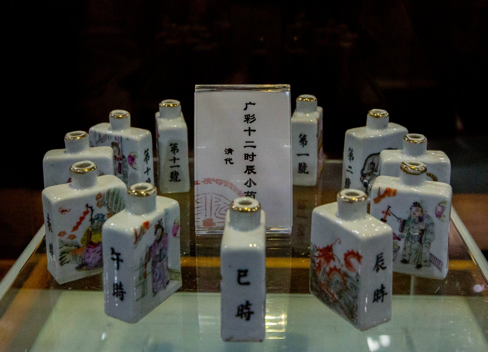 此为镇馆之宝“广彩十二时辰小药瓶”,不仅体现出古人制陶工艺精湛,更体现出中医因时服药的传统治疗理论。
