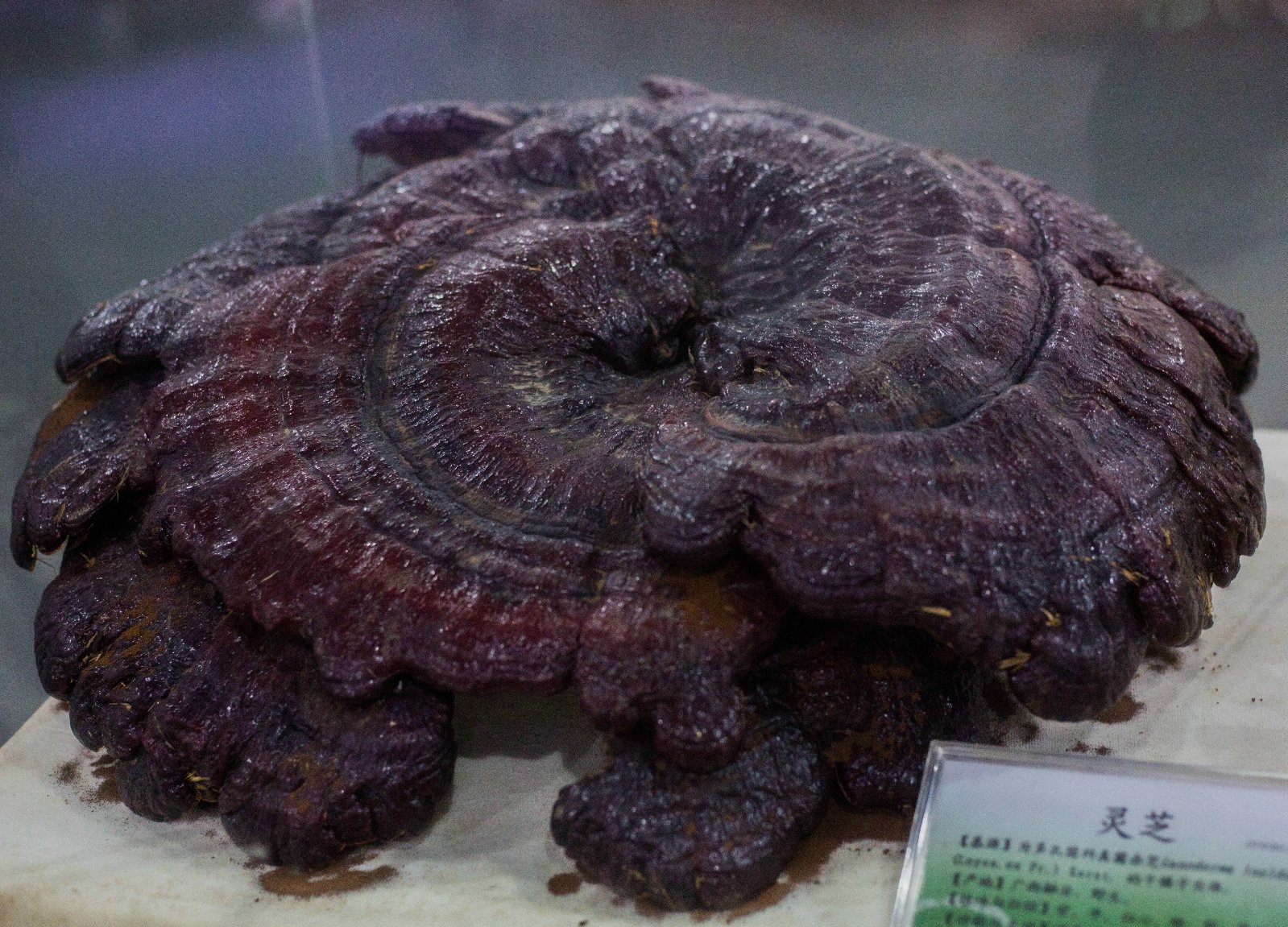 据讲解员介绍,灵芝为一年生植物,其药用价值和大小,并不因为它生长的时间过长而有更多的变化。所谓“千年灵芝”不过是日渐成为木化石的灵芝,药用价值不增反减。