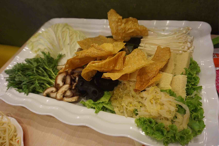 团购的双人套餐。记忆里的刘一锅很好吃。还曾经专门打车带朋友去吃。 这次吃似乎味道变了。 锅底太咸。 团购的筋头巴脑比较少。 其他拼盘种类汇集在一起。 魔芋丝和海带、香菇的味道还不错。 其他像豆腐皮之类就很一般。 调料两份。麻酱加腐乳加韭菜花。但锅底口味太重,调料完全用不到。 筋头巴脑很酥烂。套餐里的面和草莓罐头后来都剩了。