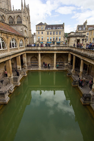 巴斯这地方有温泉,2000年前罗马人征服英国,在巴斯建立了古镇和公众澡堂。去过罗马的人多会惊叹罗马人的建筑,罗马人向希腊人学了不少,但是公众澡堂是他们的专利。。巴斯整个小镇都很古老,似乎找不到现代的建筑。
