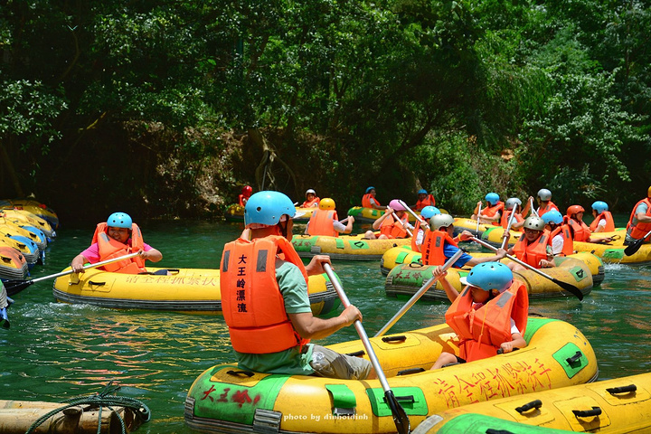 自驾的游客可以将车停在停车场,买票后会根据你买票的先后安排景区的大巴车将游客送到起漂点。 所以最好在游客中心换好漂流的衣服,建议穿短裤比较方便,女生不要穿裙子。 轻装上阵,相机都不要带了,景区唯一能接受的只有gopro这类小型器材。 要带手机的话一定要加防水套。漂流完后换的衣服要准备好,喜欢玩的水枪可以自备一个。