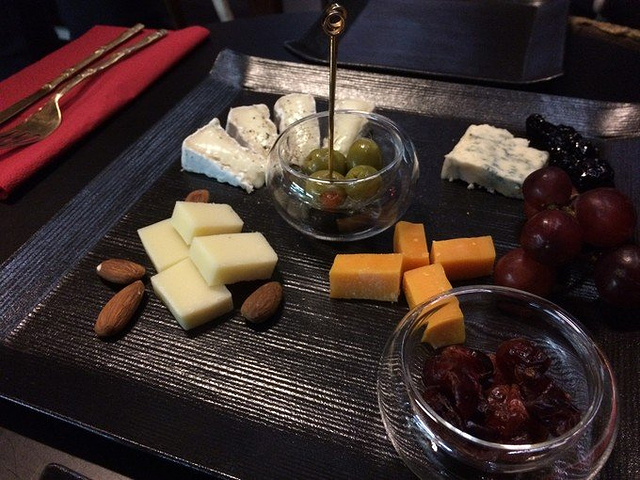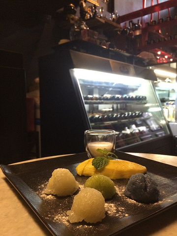 Kalapela,日本老板开的甜点店,老板说他四处旅行,到了清迈之后觉得那边的生活步伐很缓慢很安逸,就停下来不走了,才开了这家甜品店。一来可以维持生计,二来清迈有世界各地的游客到来可以听世界各地的人说着他们自己的故事。 店里tiramisu比较出名。环境很好,安安静静的,很适合约会耶! 我们第一次去的时候,tiramisu卖完了,店员主动过来添加我的微信,告诉我明天一有tiramisu就给我们发信息,好窝心! 点了个芝士拼盘,四种芝士搭配不同的配料。 唯一只有蓝芝士,没有任何的搭配,孤独地等待我们进食。 然而,生平第一次吃蓝芝士的我,差点就要吐出来,那股味道,毕生难忘,我马上就灌了半杯的冰茶才能勉强掩盖口腔中残留的蓝芝士味道。 blue cheese估计就好像榴莲,喜欢的人爱之如命,讨厌的人弃之如敝屣。