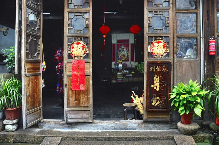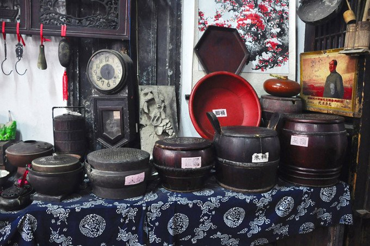 朱家老宅是保存较为完好的晚清时期建筑,它历尽百年风雨沧桑保留至今,仍居住着朱家的后人· 宅子大堂里除了出售乌镇特色纪念品之外,还摆放着一些古色古香的旧玩意,像是火炉、饭桶、米桶、脚桶、马桶的大集合,相当有意思~