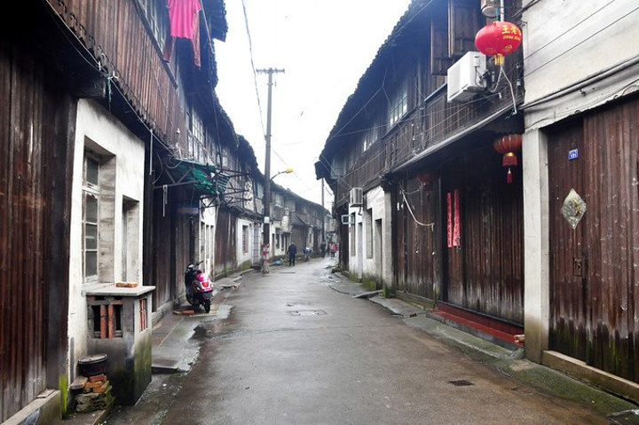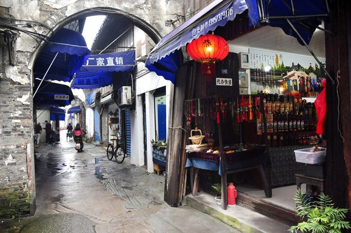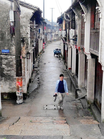 拐进弄巷里一条通向镇区上新华南路的小径,准备前往东栅景区~