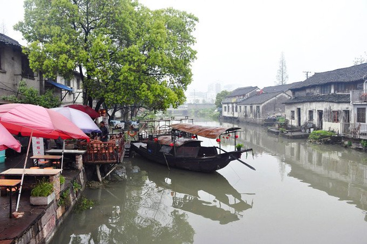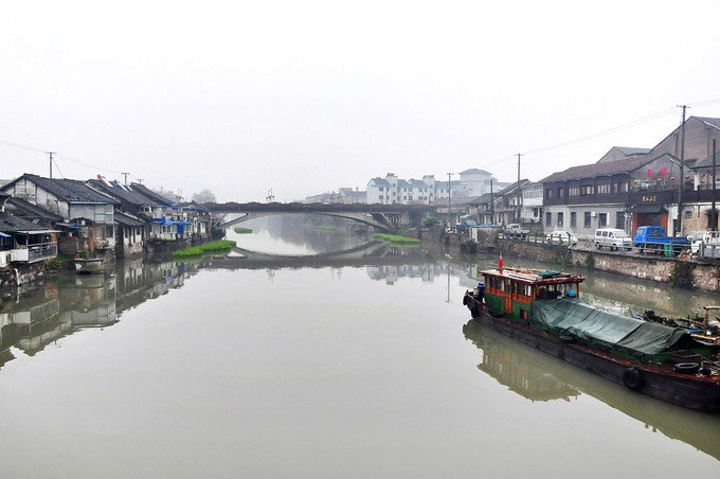 来到浮澜桥上,这里是南栅的最南端,也是京杭运河的一个十字交汇处`` 只需花3元就可以上船并以桥为景拍照留念,可惜当时顾着赶路放弃了这个机会,回想起来着实有些可惜