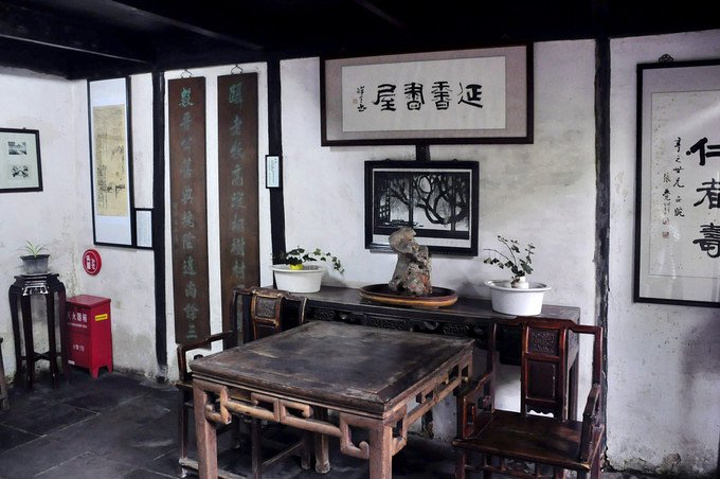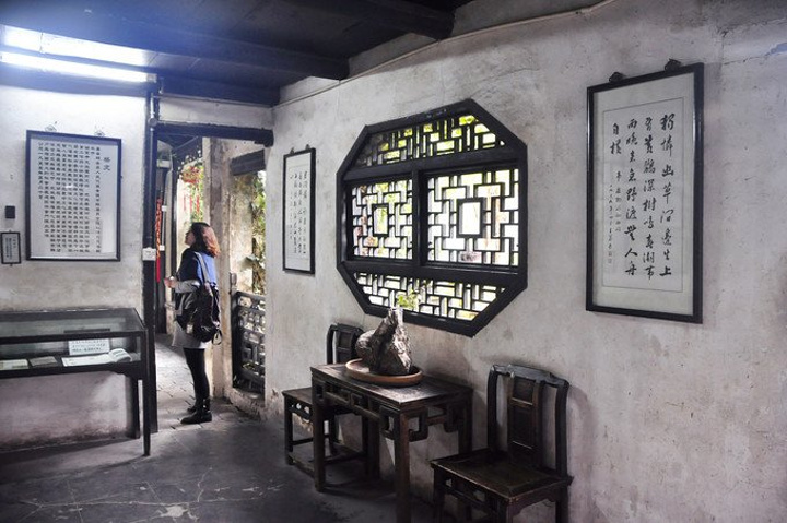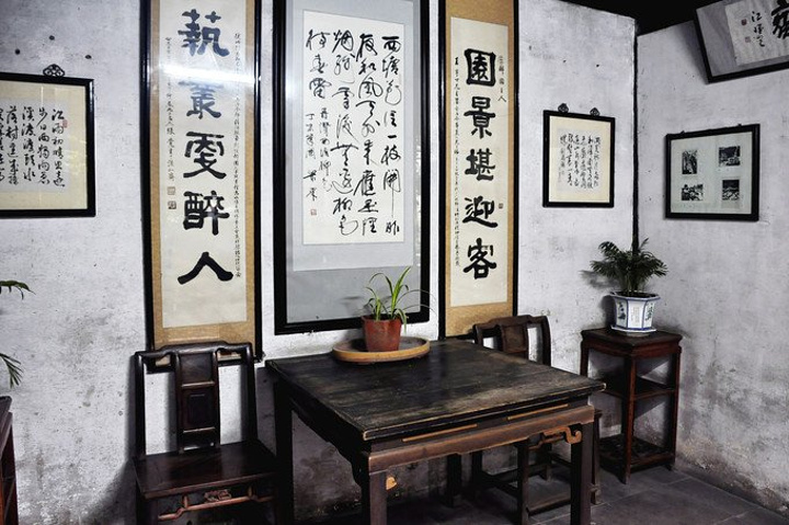 醉园初建于明代,原有五进院落,是西塘望族王氏塔湾街宅院之偏厅,现存四进` 从大门进入后的回廊中陈列着关于醉园王氏家族的介绍·