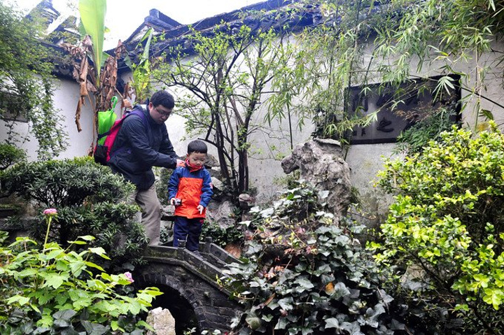第二醉是指园内景色醉人 - 醉园面积虽然仅200多平方米,但园内厅堂回廊、古砖花坛、碧池青石、翠竹红鲤,在极小的空间内将江南园林建筑的神韵展现得淋漓尽致,是个“麻雀虽小,五脏惧全”的别致宅院~ 在南边大院里更有江南最袖珍的微砖拱桥 - “醉雁桥”,桥身仅可容一身而过