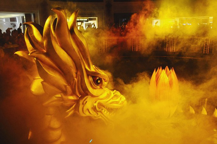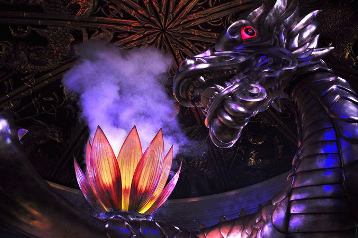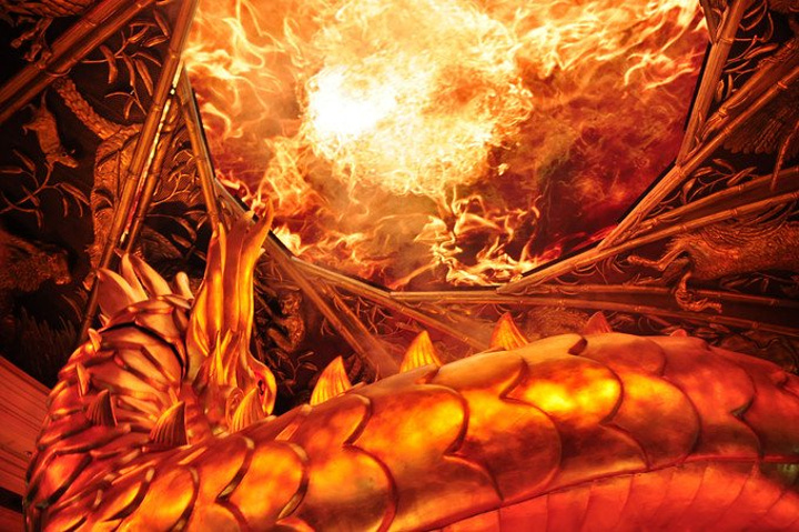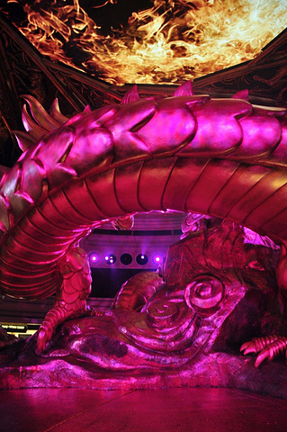 最后从穹顶射出熊熊火焰,将龙身照得通红,现场效果相当震撼人心
