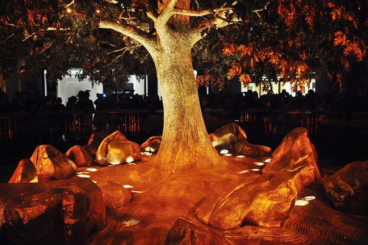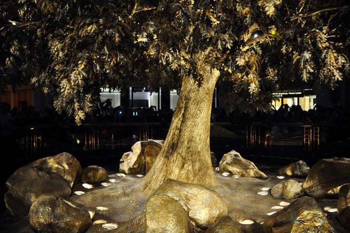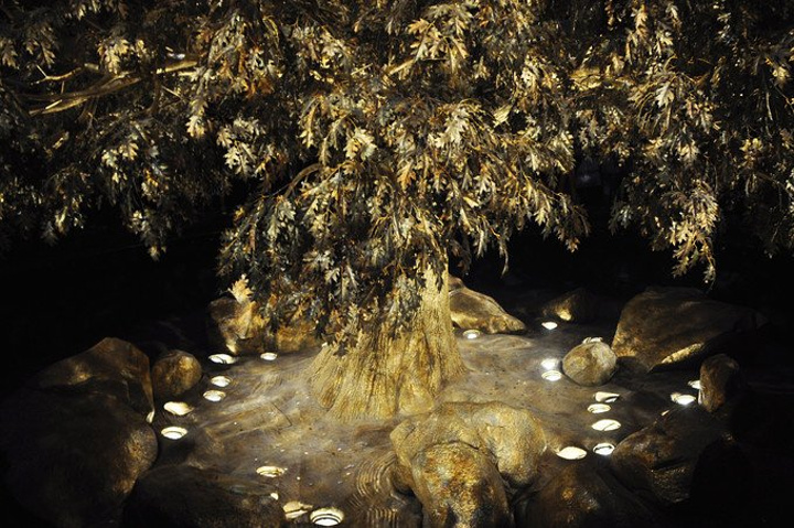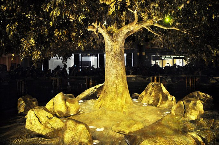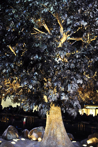 紧接着一棵巨大金树从地面缓缓升起`` 上升过程中不时能听见游客往树上扔硬币所发出的“噼里啪啦”的声音~