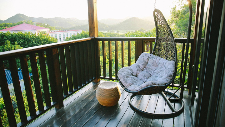 阳台上配有吊椅,让住客在此尽情放松和洗肺。